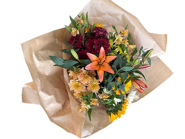 A freshly cut and wrapped bouquet delivered once per month for 3 months. Please mention your favourite colour and flower in the comments. It will contain whatever flowers are blooming at the time, but an effort will be made to accommodate special requests.